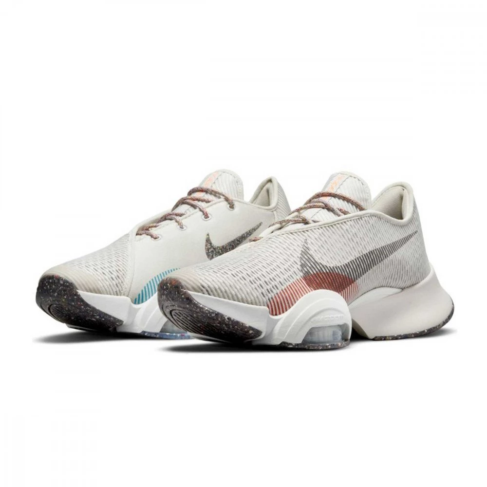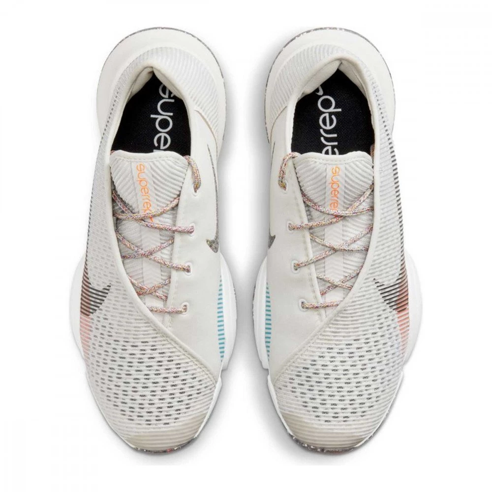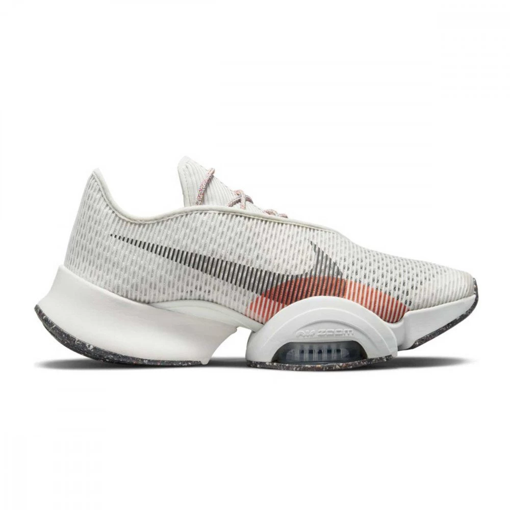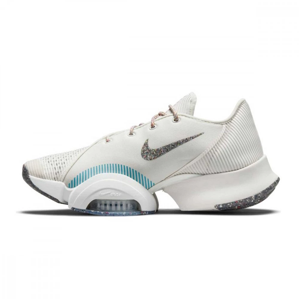 SuperRep 2 si caratterizza per le due unità Zoom Air sotto all’avampiede che assorbono l’energia ad ogni impatto e la restituiscono per il salto o il passo successivo mentre gli strati in mesh della tomaia sostengono il piede nei punti strategici per mantenerlo stabile in ogni esercizio, soprattutto negli affondi o negli squat jump. Rispetto alla precedente versione, l’avampiede è leggermente più ampio per offrire un comfort ideale a ogni tipo di piede. Anche il grande arco laterale è stato migliorato per stabilizzare e frenare il piede durante i rapidi spostamenti laterali, gli affondi laterali o salti laterali alternati.