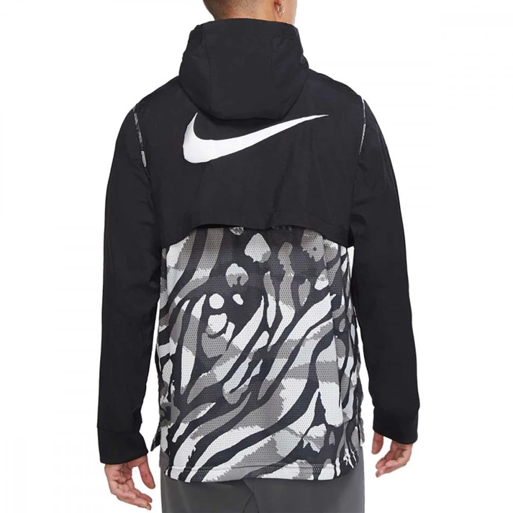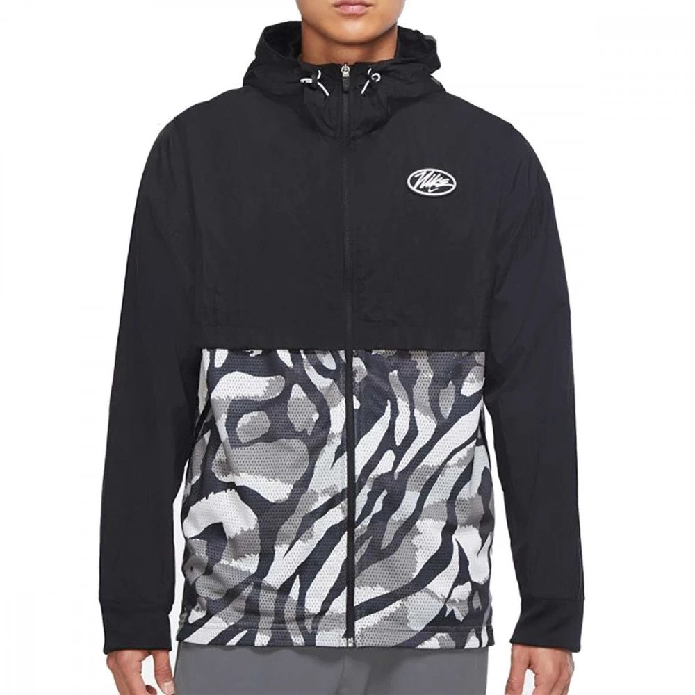 Vestibilità regular dal design a zip intera, è completa di cappuccio con coulisse e pratiche tasche laterali. Realizzata in mesh traspirante con una grintosagrafica allover, presenta un leggero strato superiore in tessuto in contrasto colore e ampio Swoosh stampato sulla schiena, per un look autentico e d’impatto.