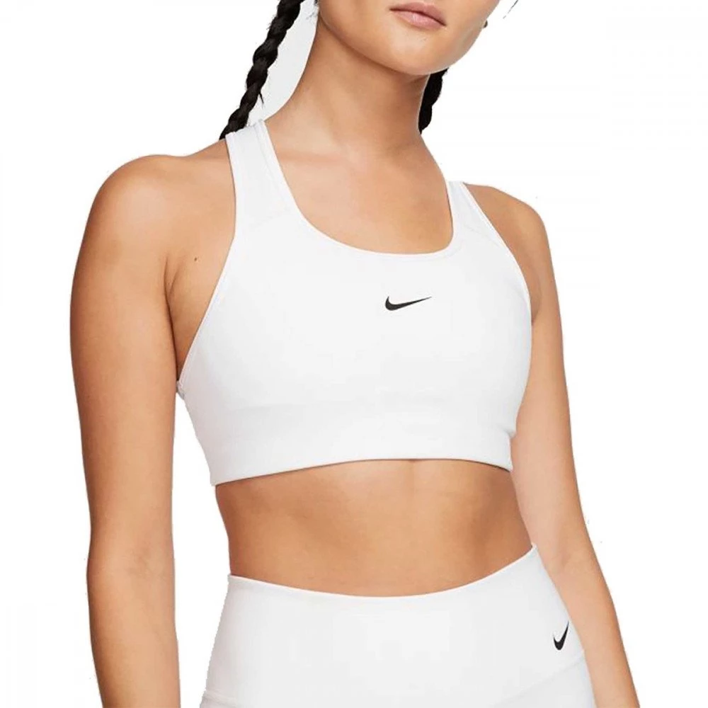 Il reggiseno sportivo Nike Swoosh è ideato per garantire un sostegno Mid-Impact durante la corsa, il tennis e gli allenamenti in palestra.