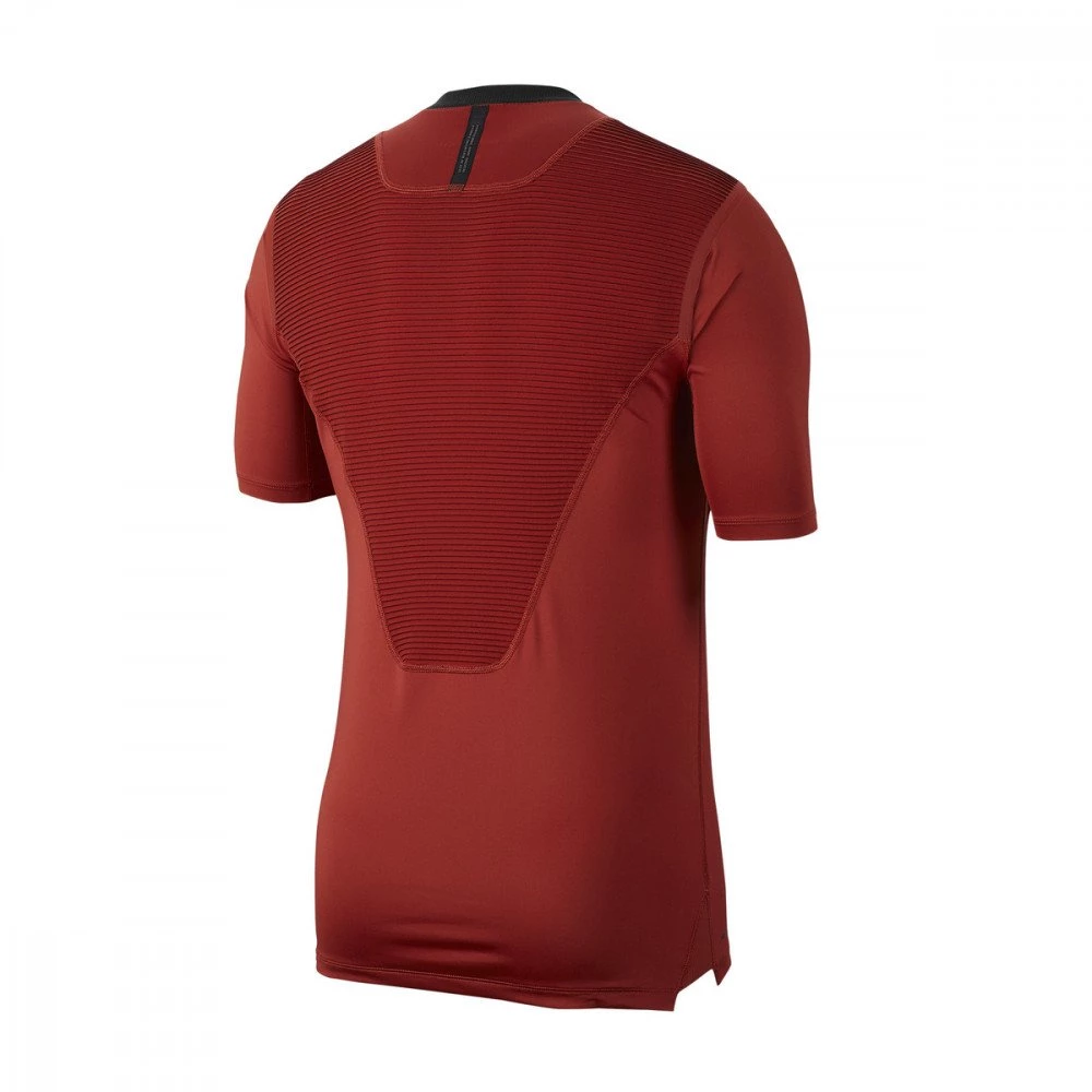 Realizzata in tessuto tecnico con tecnologia Nike AeroAdapt, che utilizza pannelli mirati di spacchetti traspirabili attivati dal sudore che rilasciano il calore del corpo durante il massimo sforzo, per poi “chiudersi” durante il defaticamento, assicura un comfort ideale. La tecnologia Dri-FIT che allontana il sudore per favorire una rapida evaporazione garantisce un’ottima traspirabilità. Vestibilità slim con cuciture sulle spalle con profilo elasticizzato e termosaldato per la massima mobilità, presenta l’orlo posteriore allungato per una maggiore copertura.