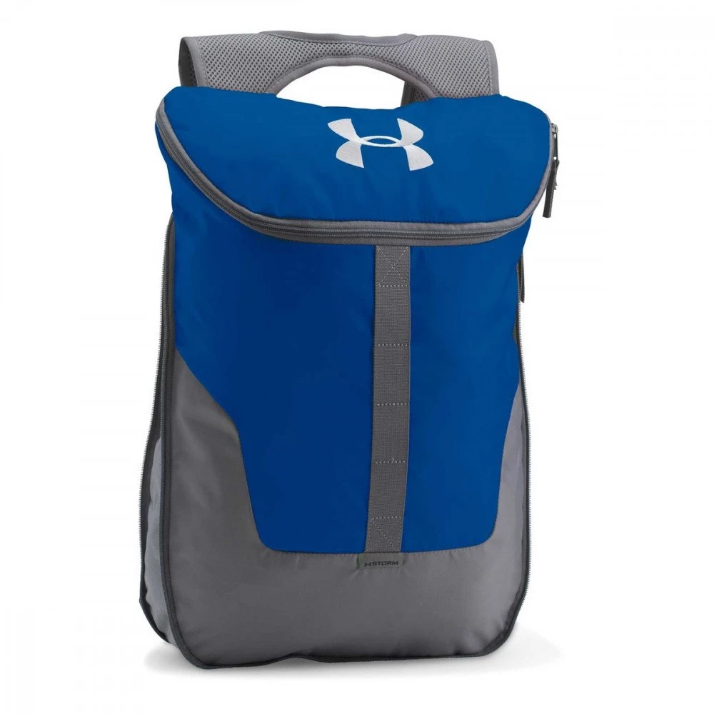 Disponibile in diverse colorazioni di stagione, è realizzato in poliestere con finitura Under Armour Storm altamente resistente all’acqua. A garantire comodità di utilizzo sono gli spallacci in mesh traspirante e i tasselli laterali con cerniera espandibili per aggiungere volume quando necessario.